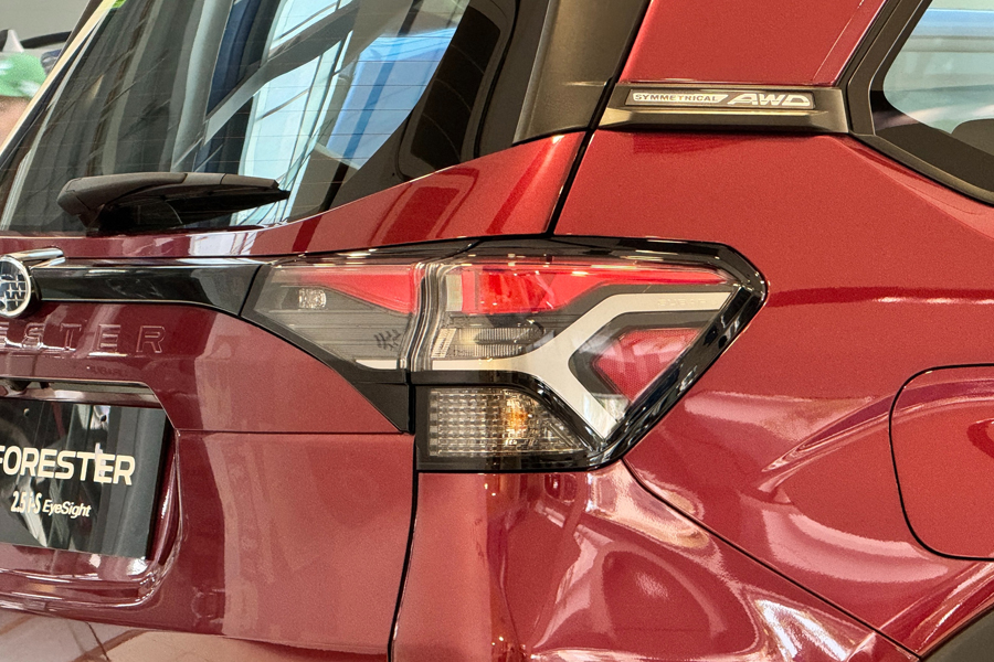 Phần đuôi xe Subaru Forester tiếp tục duy trì phong cách cứng cáp và vạm vỡ đặc trưng từ thế hệ trước. Cụm đèn hậu LED nổi bật, đồng điệu với thiết kế đèn trước, tạo nên diện mạo hiện đại và dễ nhận diện. Thay đổi đáng chú ý nhất nằm ở cản sau kích thước lớn với tông màu sáng, giúp tổng thể xe trông vững chãi và khỏe khoắn hơn.